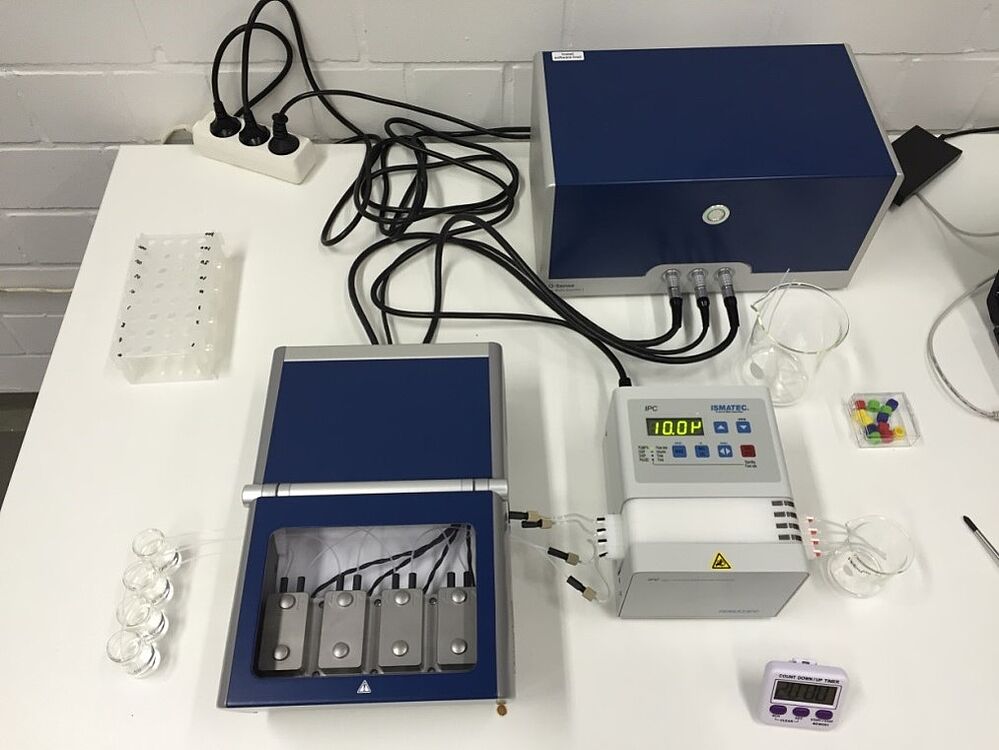 The Quartz Crystal Microbalance (QCM) is based on the piezoelectric properties of quartz. The amount of material adsorbed on the surface is determined on the basis of the change in frequency. Furthermore, by examining the impedance spectrum of the quartz crystal, further properties of the adsorbed film can be inferred. In the electrochemical QCM cell, the quartz crystal is the working electrode. Thus, it is possible to determine the influence of the applied potential on the adsorption or dissolution process.