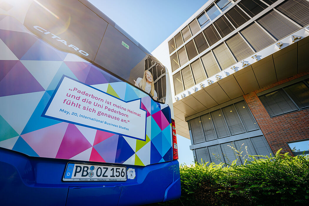 Die Universität Paderborn ist im Alltag vieler Paderborner*innen präsent – ab sofort auch auf ihren Wegen durch die Stadt. Ein neuer PaderSprinter-Bus in den bunten Farben der Universität und mit echten Studierenden als Botschafter*innen macht Lust auf das Campusleben. Ganz nach dem Motto „Studieren, um etwas zu bewegen.“ setzt die Aktion ein sichtbares Zeichen dafür, dass Studierende in Paderborn mit ihrem Engagement echte Impulse für die Gesellschaft setzen.