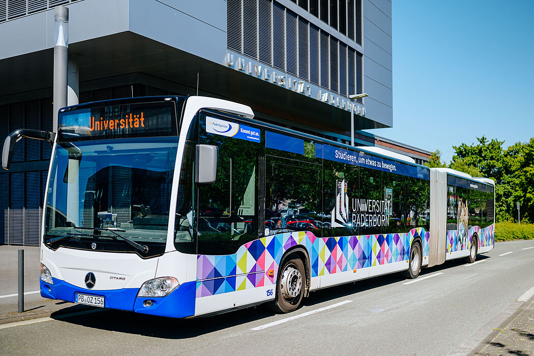 Der neue Uni-Paderborn-Bus ist ab sofort für ein Jahr auf zahlreichen Linien des PaderSprinters im Einsatz und lädt an jeder Haltestelle dazu ein, Wege gemeinsam zurückzulegen – sei es zur Schule, zum Wochenmarkt oder zum Fußballstadion des SC Paderborn. „Mit dem Uni-Paderborn-Bus machen wir sichtbar, was uns als Universität ausmacht: Vielfalt, Engagement und der Wille, gemeinsam die Stadt zu gestalten. Das Motto ‚Studieren, um etwas zu bewegen.‘ begleitet uns dabei auf jedem Kilometer“, freut sich Prof. Dr. Beate Flath, Vizepräsidentin für Lehre, Studium und Qualitätsmanagement.