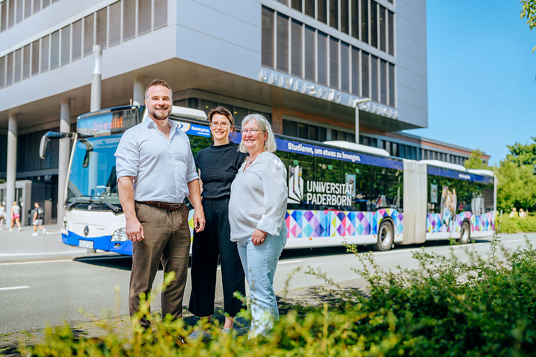 Mit zahlreichen Linien, die den Campus an der Warburger Straße oder die Standorte an der Fürstenallee, im Technologiepark und am Berliner Ring anfahren, spielt das Verkehrsmittel Bus eine zentrale Rolle für die Mobilität an der Universität Paderborn. „Um Studierende, Mitarbeitende und Bürger*innen klimafreundlich zu vernetzen, unterstützen wir als Universität die Nutzung des öffentlichen Nahverkehrs. Mit dieser Aktion bringen wir unser Engagement für nachhaltige Mobilität buchstäblich auf die Straße“, findet Simone Probst, Vizepräsidentin für Wirtschafts- und Personalverwaltung.