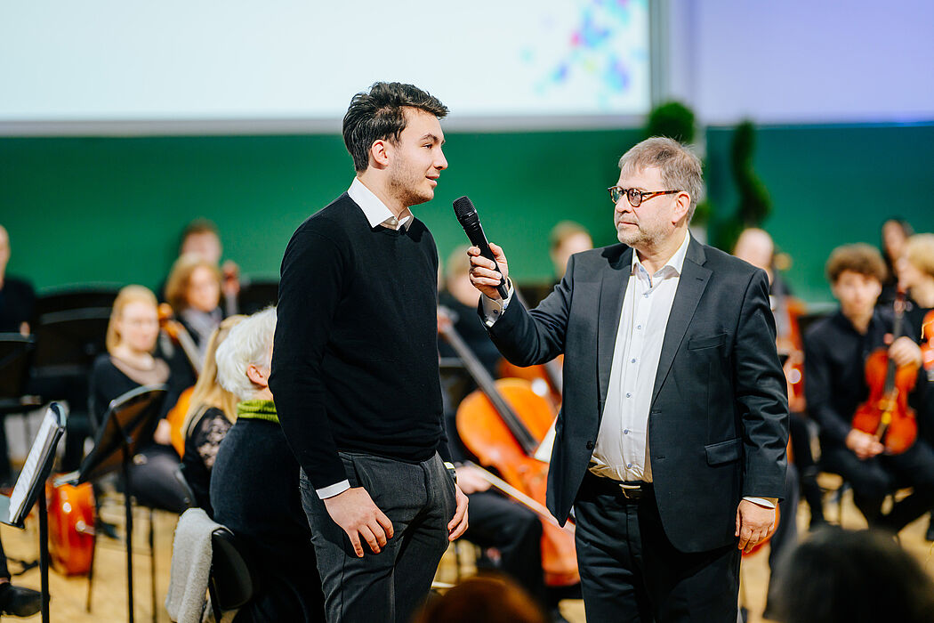 Moderiert wurde der Neujahrsempfang von Ulrich Lettermann vom Fach Musik. Das Hochschulorchester unter der Leitung von Steffen Schiel begeisterte das Publikum mit Kompositionen von Johann Sebastian Bach und Ludwig van Beethoven.