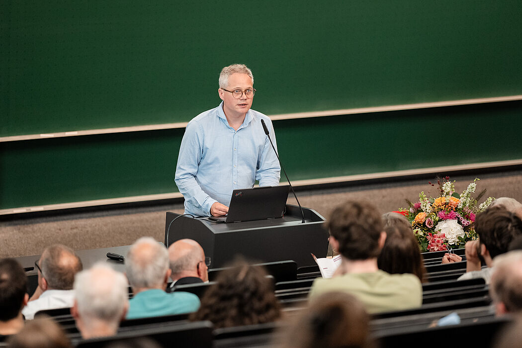 Prof. Dr. Jürgen Klüners, Dekan der Fakultät für Elektrotechnik, Informatik und Mathematik, begrüßte die Anwesenden im vollbesetzten Hörsaal O1 und erläuterte die Bedeutung der Weierstraß-Vorlesung. Die bereits seit 2011 jährlich stattfindende Vorlesung ist nach Karl Weierstraß (1815-1897) benannt, der 1834 sein Abitur am Gymnasium Theodorianum in Paderborn als bester Absolvent der Schule gemacht hat. Er zählt zu den bedeutendsten Mathematiker*innen des 19. Jahrhunderts und gilt u. a. als Begründer der modernen Analysis.