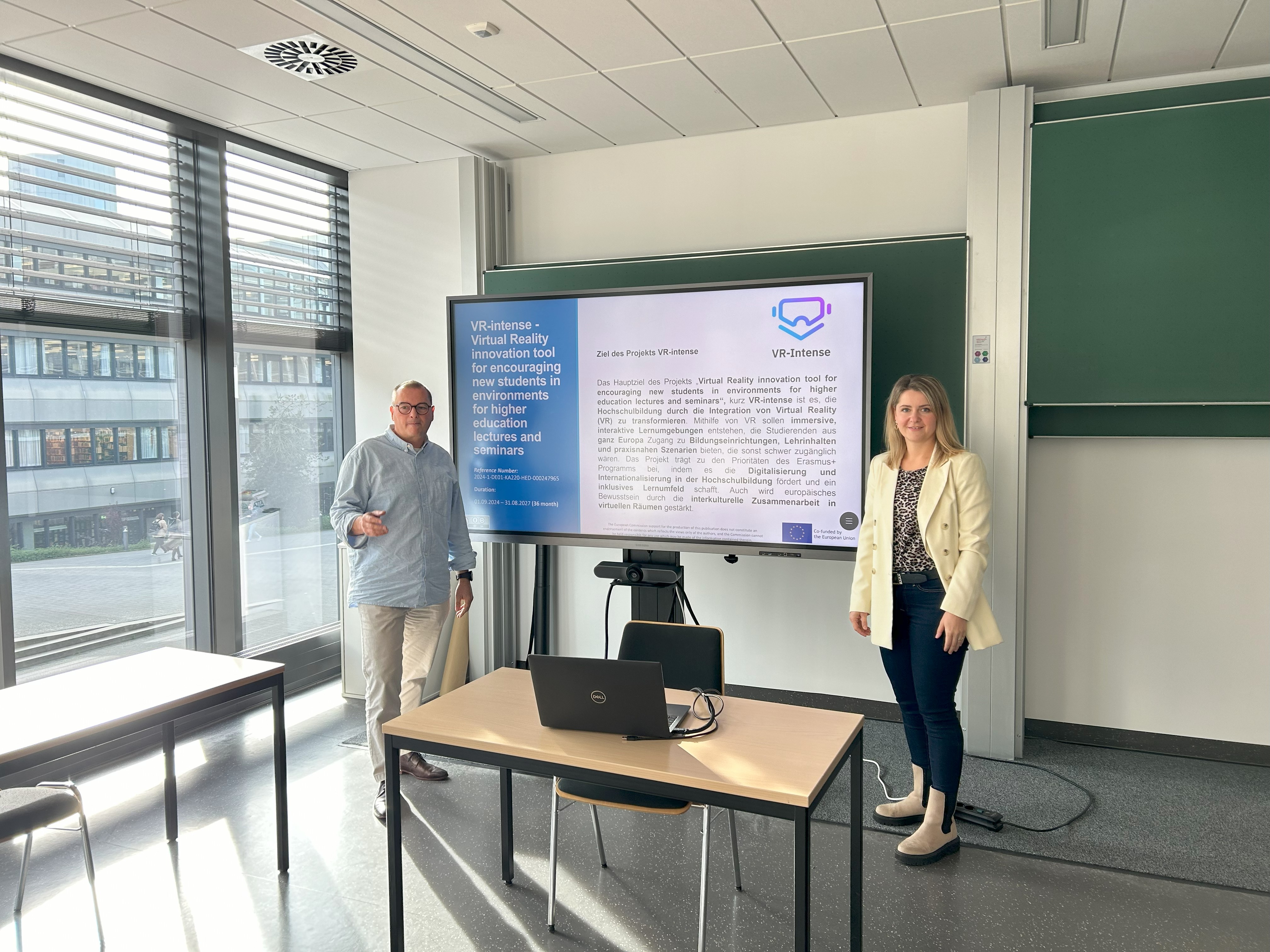 Die Projektpartner*innen arbeiten gemeinsam an der Programmierung, Implementierung und Evaluation einer VR-Umgebung, die „Blended Learning“, bei dem die analoge auf die virtuelle Lernwelt trifft, und digitale Medien kombiniert. Es sollen nachhaltige und übertragbare Strategien für den Einsatz von VR in der Hochschulbildung entstehen. Ein besonderes Augenmerk liegt dabei auf der Entwicklung von VR-Tools für Exkursionen und der europaweiten, kollaborativen Zusammenarbeit in virtuellen Räumen. „Mit VR-intense möchten wir die Hochschulbildung auf ein neues Level heben“, erklärt Beutner. „Durch die Kombination von Virtual Reality und Blended Learning wollen wir Studierende in ganz Europa begeistern und ihnen neue, interaktive Lernerfahrungen ermöglichen.“