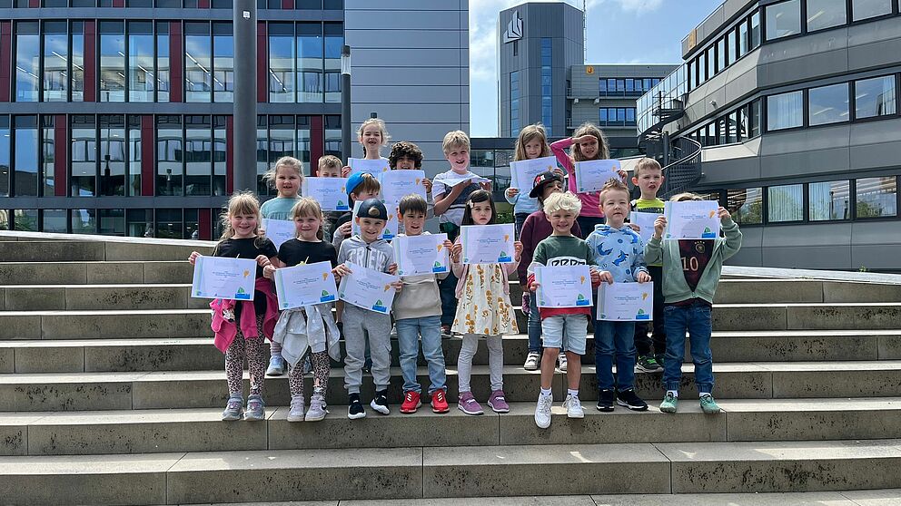 Foto (Lernzentrum „Sachunterrichtstreff“): Die Vorschulkinder mit ihren Urkunden.