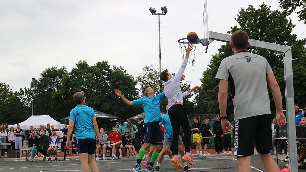 Bei der Premiere des Multi-Turniers „Campus Champions“ auf dem Outdoor-Campus der Universität Paderborn haben sich zahlreiche Teilnehmer*innen in verschiedenen Sportarten wie „3x3“-Basketball, Beachvolleyball oder Padel-Tennis miteinander gemessen.